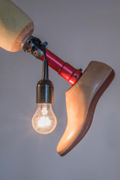 Furniture, Nato wire chrome-plated, porcelain dishes with photoprints, window replaced by photo on acrylic glass, mirror